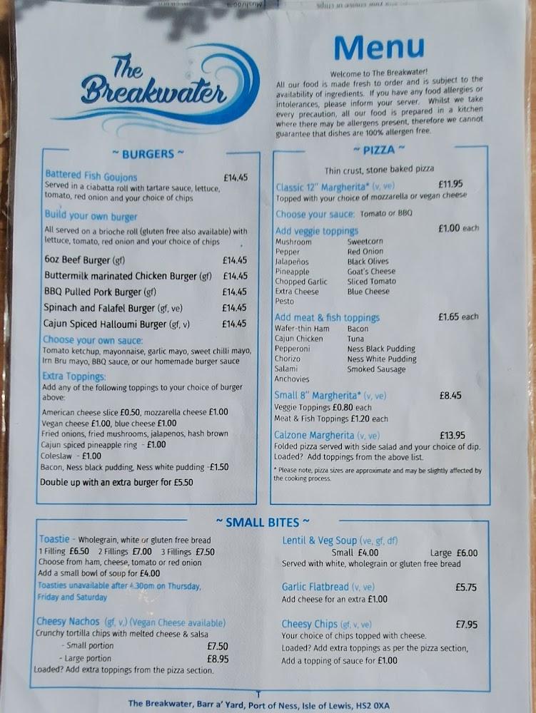 Nestled at the top of the bluff in Ness, The Breakwater boasts stunning views of the surrounding beach and harbor. This charming café-restaurant vibrantly contributes to the local community, often buzzing with friendly laughter and conversation. The establishment emphasizes accessibility with wheelchair-friendly features, ensuring everyone can enjoy its offerings. Visitors frequently rave about the cheerful service and inviting ambiance, creating a warm and welcoming environment for guests of all ages. Situated in the scenic Isle of Lewis, the restaurant serves as a perfect pit stop for tourists exploring the area or for locals looking to unwind.